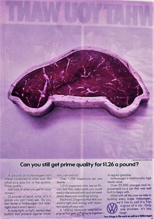 The Beefeater ad is an excellent example of an ad designed to be ignored. As such, it does its work while the beholder is occupied elsewhere, in this case, with reading the column of print on the left. The ad itself can be grasped in a second or two at most: there is nothing there, just a few fragments of a situation. The bottle cap, the martini glass and olive and its reflection, the single word. The beholder fills in the rest and thereafter relegates the entire to the area of inattention so the ad continues to work for the next minute or two or three as he reads the print. The entire ad is subliminal.