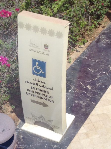 Signalétique de la Grande Mosquée Cheikh Zayed, 2 : « Entrée pour les personnes très déterminées (people of determination) »