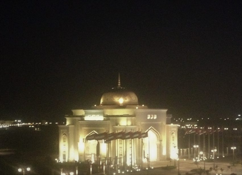 J’arrive le soir à Abu Dhabi. Mon hôtel : Khalidiya Palace, un cinq étoiles qui figure dans mon guide (Abu Dhabi en quelques jours édité par lonely planet, septembre 2015), acheté à l’aéroport, dans la catégorie des hôtels à « prix moyens »… Un cinq étoiles dans les prix moyens. Concept.