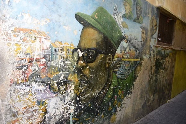Le FOL cité plus haut, dont le nom entier est « Frente Obrero Liberashon 30 di Mei » en souvenir des grèves massives du 30 mai 1969 à Curaçao, fut créé par des leaders de cette insurrection, à savoir Wilson « Papa » Godett, Amador Nita et Stanley Brown. C’est Papa Godett qui figure ci-dessous sur la peinture murale (photo) réalisée par l’artiste Ras Elijah (un nom rastafarien) dans la Bajonetstraat d’Otrobanda à Curaçao. L’uniforme kaki avec casquette adopté par les insurgés curaciens en mai 1969 montre l’inspiration que furent pour eux Fidel Castro et les révolutionnaires cubains.