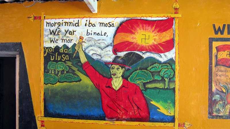 2 armes de balsa : Chaque année à Guna Yala, la Révolution de 1925 est commémorée par le peuple. Les événements font l’objet de reconstitutions qu’Aiban Wagua ici décrit : les insurgés portent des chemises rouges et ont le visage peint d’achiote (ou rocou), les acteurs ont des fusils en balsa.