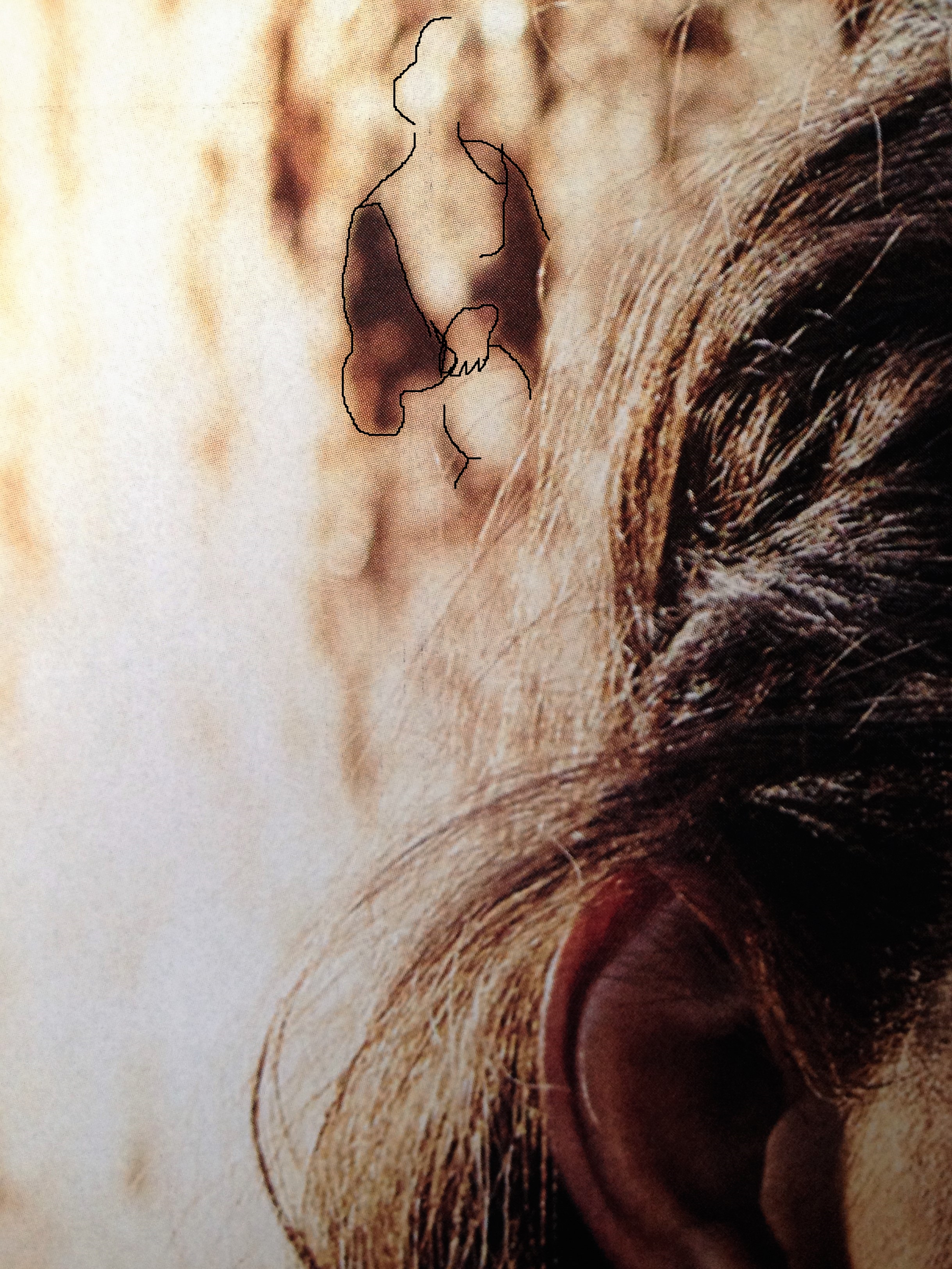 Further on the right of the penis, you can see a spectral face on the cloth. The model herself has something eerie about her. She may be described, except for the closed mouth, as been completely thoughtless and emotionless, as if zombified.