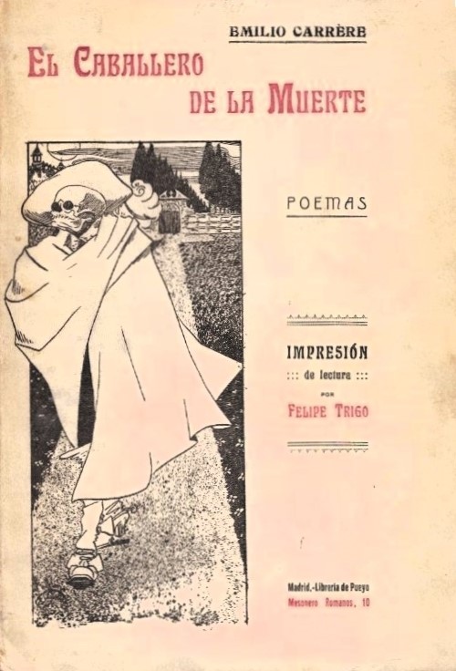 D’aucuns – et cela devient habituel pour les poètes que nous traduisons ici – appellent Carrère un poète « oublié ». Or son nom reste important dans la littérature fantastique espagnole, avec des nouvelles et des romans dont le plus célèbre est La torre de los siete jorobados (La tour des sept bossus), de 1920, qui fut adapté au cinéma. C’est plutôt la poésie elle-même qui tombe dans l’oubli, après plusieurs millénaires de bons et loyaux services.