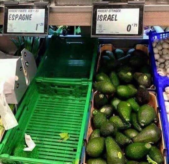 People are so nauseated by Israeli products that stores in France sell Israeli avocados as coming from Spain.