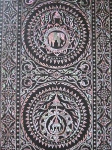 Banpratu-pradapmuk: mother-of-pearl inlaid door panel. I added no Thai definition for this compounded word because the compound talks of itself. The following picture gives an idea of the beauty of this craft.