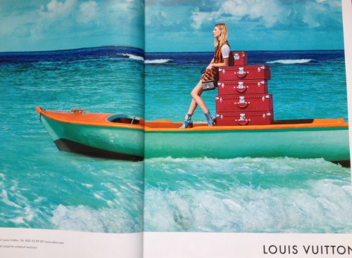 This advertisement for Louis Vuitton is of the same series designed for the manufacturer as Case 33 (here). First, I would like to call your attention on the way the model is wearing her bag. Although we have the typical background of bright sky and blue sea so appealing to dejected employees, the woman is fearing something is going to happen to her. She is holding the bag against her chest, looking at a distance, as if she had been suddenly aware of a desperado’s presence. The scene, in fact, is mildly nerve-racking. It’s only because you do not expect such tone in a tropical, and topical, advert for a handbag that you did not perceive it at first. Well, you did not perceive it, maybe, but your lizard brain has registered the model’s disquiet nevertheless – because it has no social expectations like yourself, I mean your conscious self, which is easily tricked by advertisers because of the preconceived notions we are all using as shortcuts to deal with the requirements of everyday life.