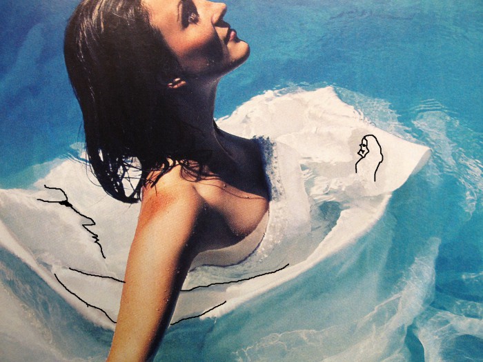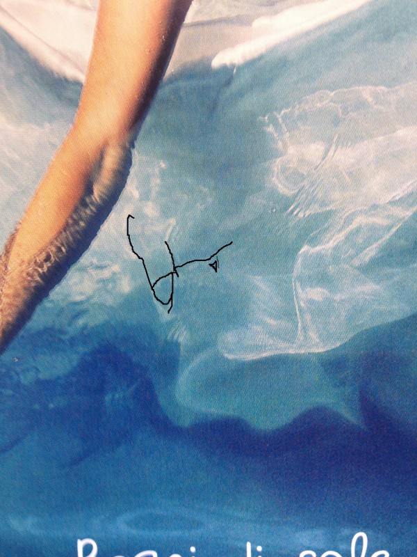 That lizard brain of yours also registered something else. On the turquoise waves a drawing has been embedded. It represents two kids and a man, all naked. One kid is leaning against the other’s shoulder. Maybe he’s tired, maybe he’s ashamed, maybe he’s crying. The other kid is masturbating the man’s penis. The man is lying on the back, both hands under his head. He’s enjoying. This is subliminal pedophilia, something we have already come across (Case 52 here). As a first guess, I’d say it will (discarding any sexual stimulation effect) contribute to heighten in the female viewer the anxiety produced by perceiving, unconsciously most of the time, the model’s apprehensiveness. Mirror cells in the brain tend to reproduce as yours the emotions you perceive on others; that is their function, and I suggest they will reproduce emotions even when you fail to interpret these emotions correctly at conscious level. Choosing a handbag is in itself an anxious experience – all choices imply some degree of anxiety – and here it is connected with status anxiety, like all fashion. Anxiety advertising is aimed at producing the right crisis in the mind.