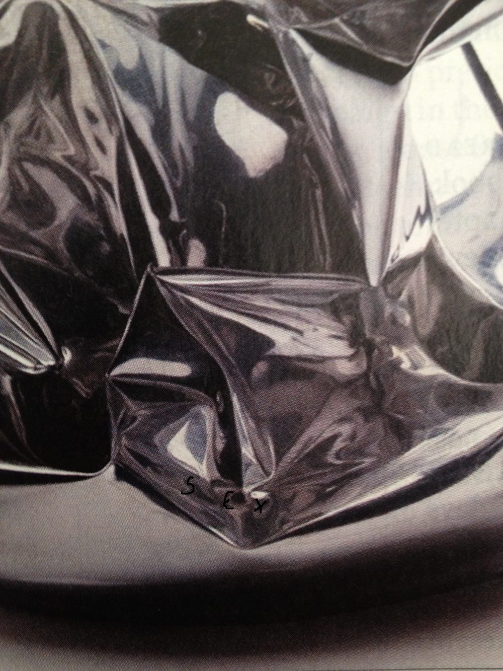 From Time Magazine, March 30, 2015, p.46, the following picture of three actors from a movie presented on p.45. People in the media call it film criticism, some other people call it advertising. Whether subliminal techniques are required for film criticism, I don’t know, but I can see SEXes in the picture, in the background on the left, where some shady area is apparent, inside of which clouds of embedded letters can be perceived. Several overlapping SEXes pop up, of which I have delineated one.