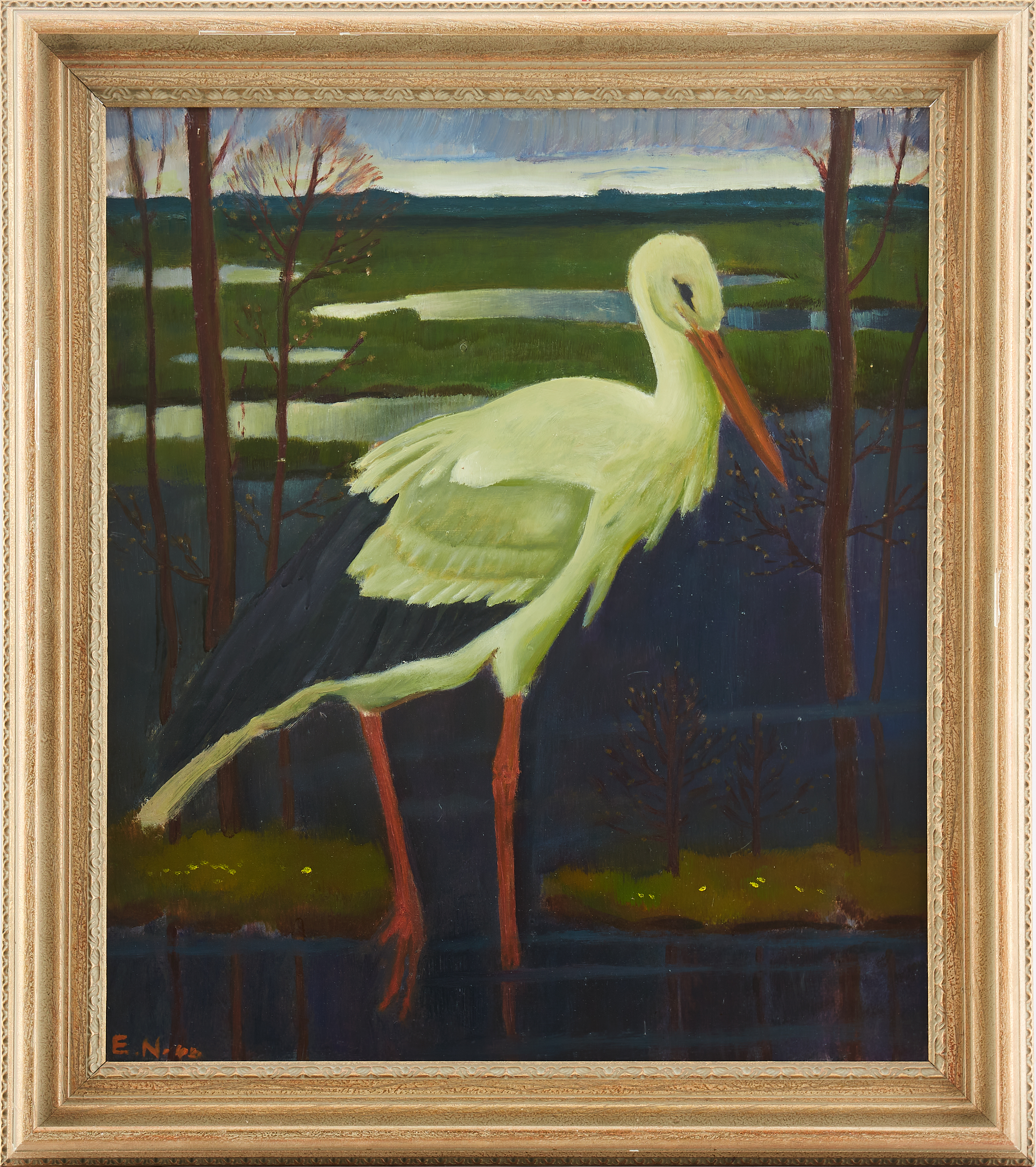 Ernst Norlind (1877-1952) est un peintre et écrivain suédois. En tant que peintre, il est connu pour des œuvres paysagistes et animalières, et, s’agissant de ces dernières, comme « le peintre des cigognes », surnom qu’il reçut en raison du grand nombre de ses tableaux représentant cet animal (voyez un exemple dans le corps des présentes traductions). Son œuvre graphique la plus connue, de renommée internationale, est l’affiche de l’Exposition Baltique de 1914 à Malmö, encore souvent proposée à la vente par les marchands d’affiches (et qui représente des cigognes). Ses tableaux sont exposés dans les principaux musées de Suède.