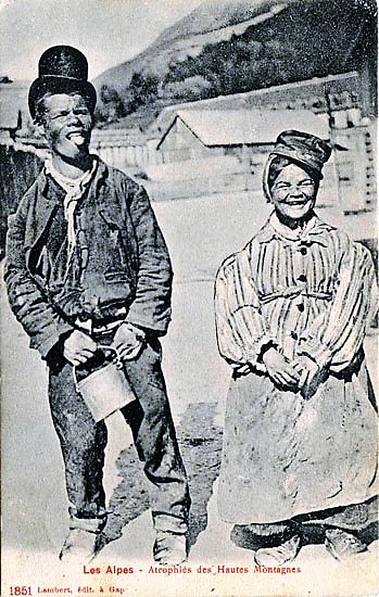 La mention des crétins est intéressante. Voici la définition que donne le Littré du mot « cagot » : « Peuplade des Pyrénées affectée d’une sorte de crétinisme. » Les crétins pourraient être le reliquat d’une race archaïque ; toutes les races archaïques ont été contraintes par l’expansion de l’homme européen de trouver un refuge dans des lieux peu accessibles : tels sont les Schrättlinge des « lieux isolés » évoqués plus haut, les cagots des Pyrénées, les colliberts du Marais poitevin, les crétins des Alpes… Le Grand Larousse du XIXe siècle souligne que les cagots « étaient sous la protection de l’Eglise ».
